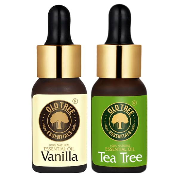 【Tea Tree and Vanilla essential oil combo】- This combo package offers two 15 ml bottles, one containing Tea Tree essential oil and the other containing Vanilla essential oil, providing a delightful blend of aromas and potential benefits.