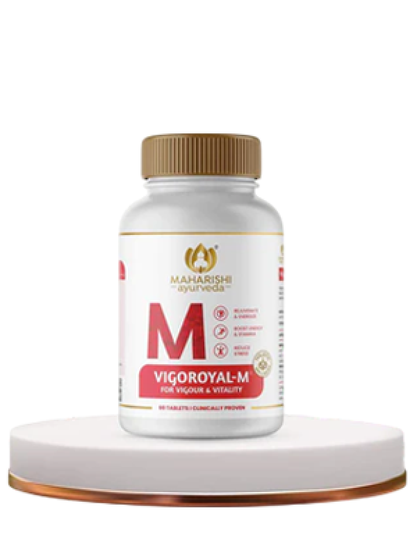 Maharishi Ayurveda Vigoroyal-M Tablet is an Ayurvedic formulation specifically designed for men. It is described as a "Rasayana," which is a term used in Ayurveda to refer to rejuvenating and revitalizing herbal formulations. Vigoroyal-M is formulated with a blend of rare herbs from Maharishi Ayurveda that is specifically chosen to address the needs of men. It is intended to promote strength, stamina, and vigour in men.